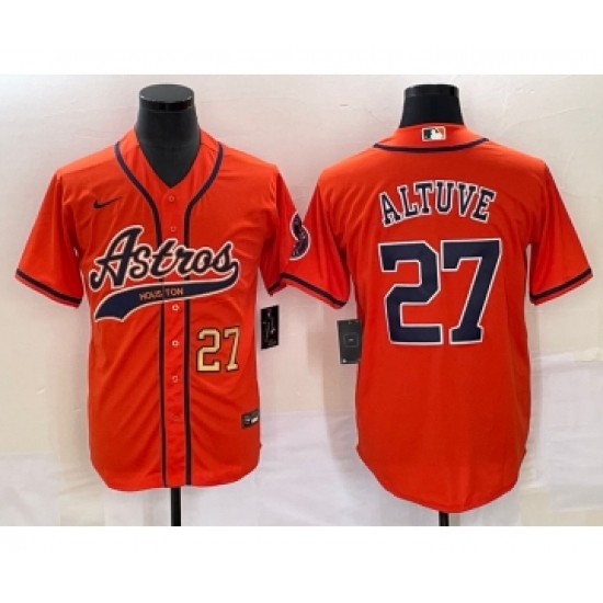 Men's Houston Astros #27 Jose Altuve Number Orange Cool Base Stitched Baseball Jersey