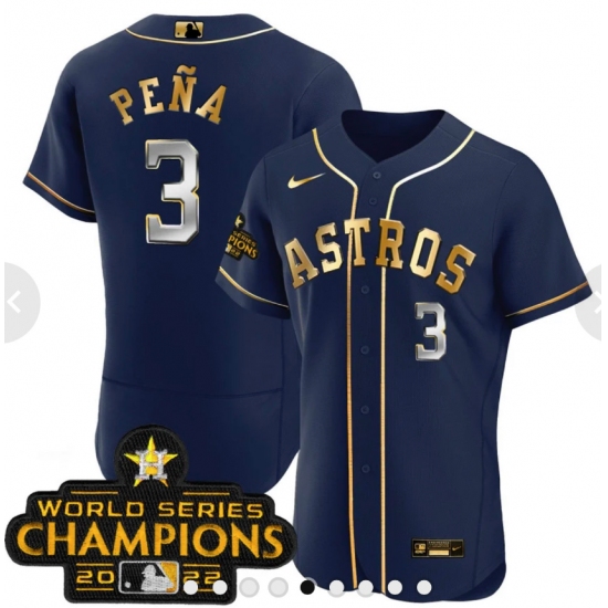 Men's Houston Astros #3 Jeremy Pena 2023 Blue Gold World Serise Champions Base Stitched Jerseys