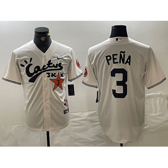 >Men's Houston Astros #3 Jeremy Pena Cream Cactus Jack Vapor Premier Stitched Baseball Jersey