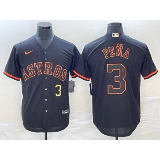 Men's Nike Houston Astros #3 Jeremy Pena Black Color Stitche Cool Base Jersey