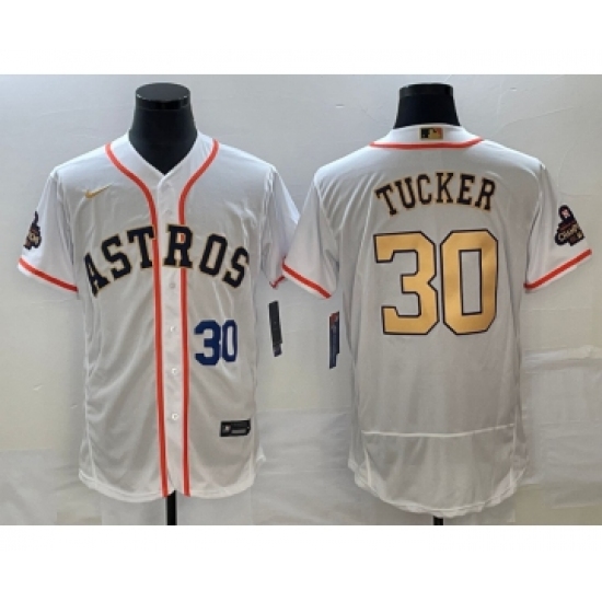 Men's Houston Astros #30 Kyle Tucker Number 2023 White Gold World Serise Champions Flex Base Stitched Jersey2