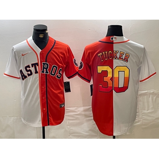 Men's Houston Astros #30 Kyle Tucker White Orange Split Stitched Baseball Jersey