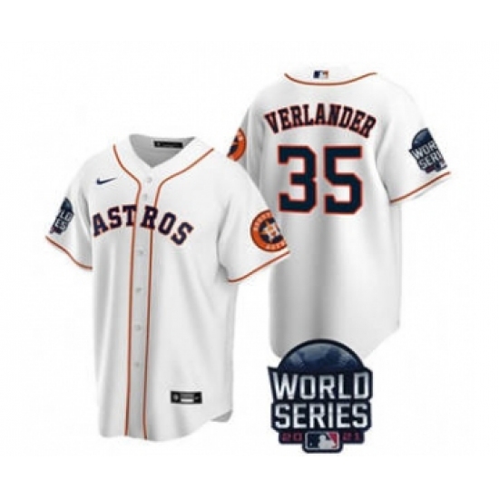 Men's Houston Astros #35 Justin Verlander 2021 White World Series Cool Base Stitched Baseball Jersey