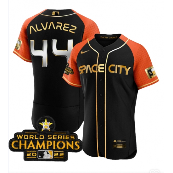 Men's Houston Astros #44 Yordan Alvarez Black Gold 2022 World Serise Champions Stitched Baseball Jersey