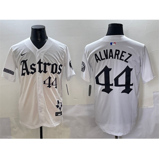 Men's Houston Astros #44 Yordan Alvarez White Gothic 'Houston Born Barrio Raised' Limited Stitched Baseball Jersey