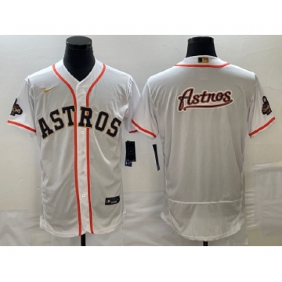 Men's Houston Astros Big Logo 2023 White Gold World Serise Champions Flex Base Stitched Jersey1