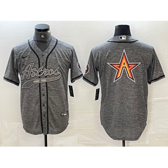 >Men's Houston Astros Gray Team Big Logo With Cool Base Stitched Baseball Jersey