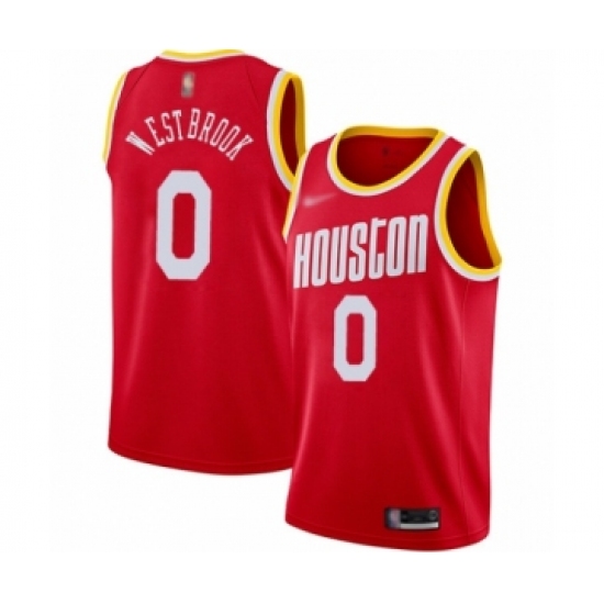Men's Houston Rockets #0 Russell Westbrook Authentic Red Hardwood Classics Finished Basketball Jersey