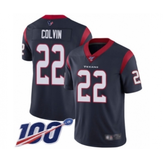 >Men's Houston Texans #22 Aaron Colvin Navy Blue Team Color Vapor Untouchable Limited Player 100th Season Football Jersey
