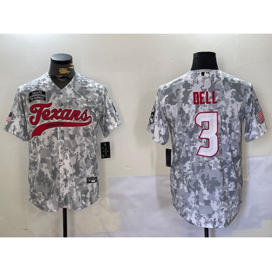 Men's Houston Texans #3 Tank Dell Arctic Camo 2024 Salute to Service Stitched Baseball Jersey