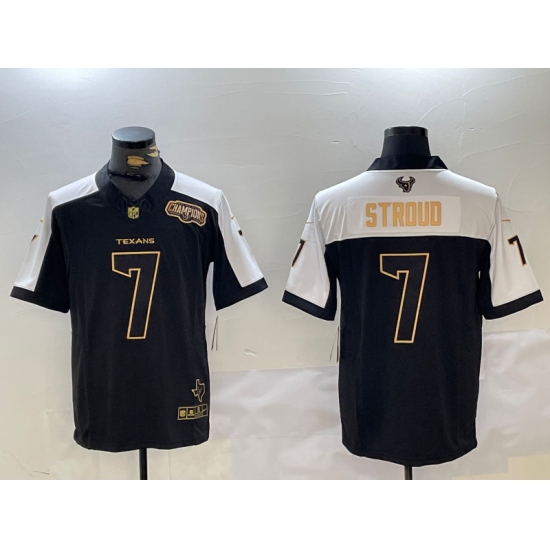 >Men's Houston Texans #7 CJ Stroud Black White Golden 2023 FUSE South Champions Limited Stitched Jersey