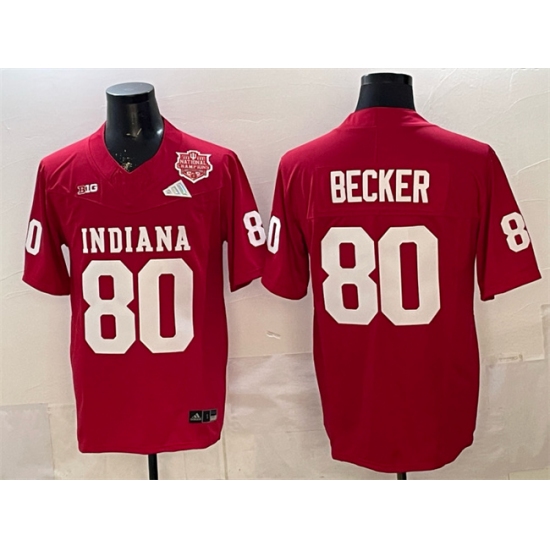 Men's Indiana Hoosiers #80 Charlie Becker Red F.U.S.E. 2025 National Champions Patch Stitched Football Jersey