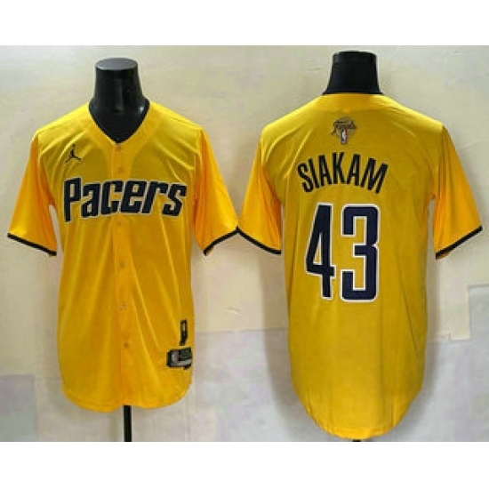 Men's Indiana Pacers #43 Pascal Siakam Yellow 2025 Finals Vapor Stitched Baseball Jersey