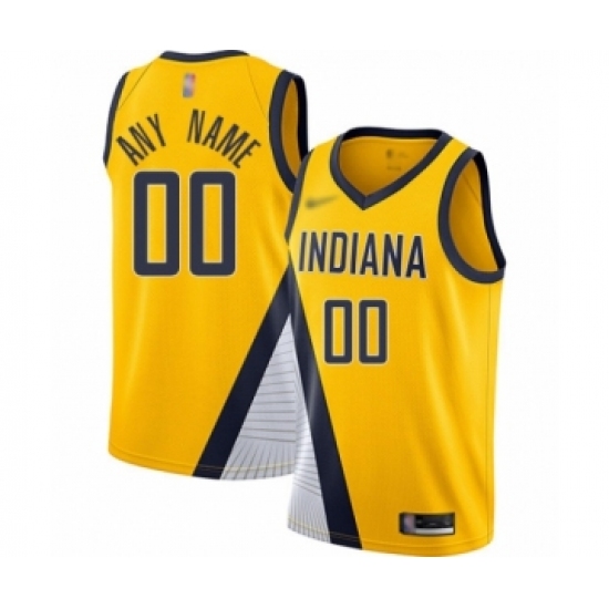 >Men's Indiana Pacers Customized Authentic Gold Finished Basketball Jersey - Statement Edition