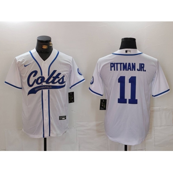 >Men's Indianapolis Colts #11 Michael Pittman Jr White Cool Base Stitched Baseball Jersey