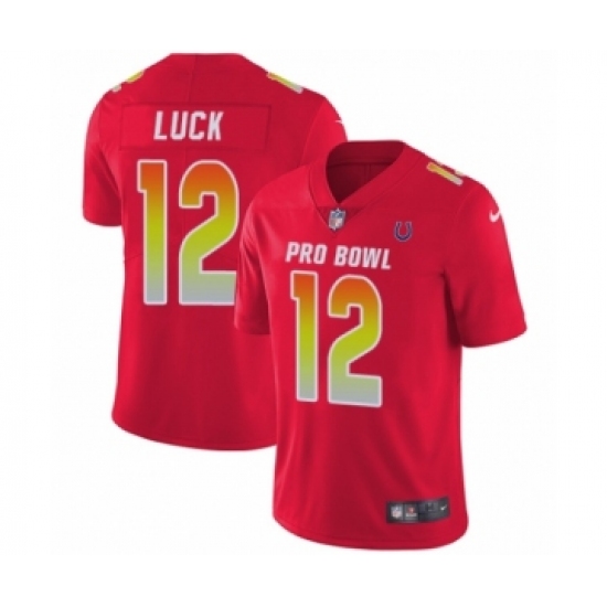 >Men's Indianapolis Colts #12 Andrew Luck Limited Red AFC 2019 Pro Bowl Football Jersey