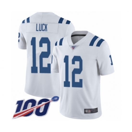 Men's Indianapolis Colts #12 Andrew Luck White Vapor Untouchable Limited Player 100th Season Football Jersey