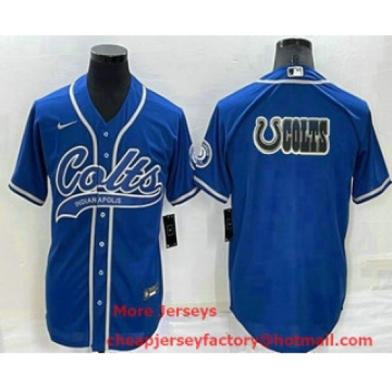 Men's Indianapolis Colts Blue Team Big Logo With Patch Cool Base Stitched Baseball Jersey