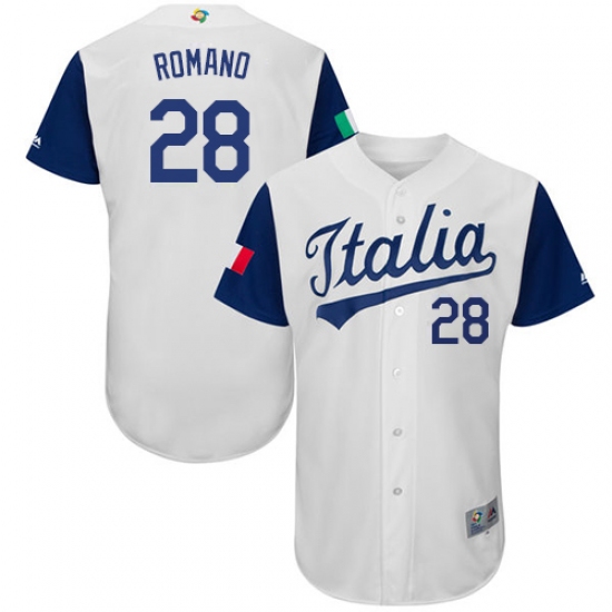 Men's Italy Baseball Majestic #28 Jordan Romano White 2017 World Baseball Classic Authentic Team Jersey
