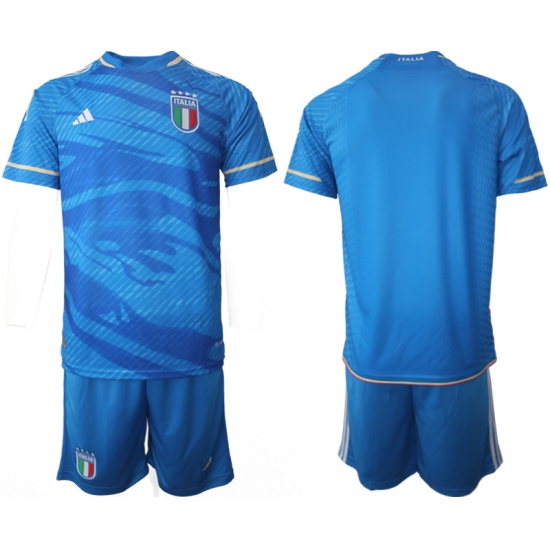 Men's Italy Custom 2024-25 Blue Home Soccer Jersey Suit