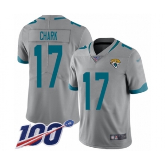 >Men's Jacksonville Jaguars #17 DJ Chark Silver Inverted Legend Limited 100th Season Football Jersey