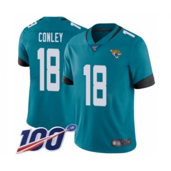 Men's Jacksonville Jaguars #18 Chris Conley Teal Green Alternate Vapor Untouchable Limited Player 100th Season Football Jersey