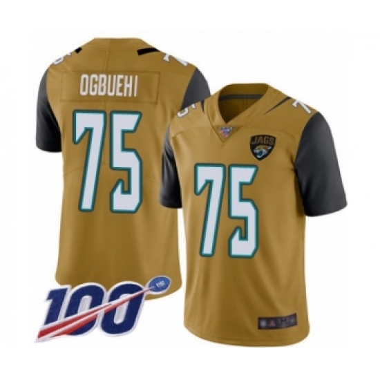 >Men's Jacksonville Jaguars #75 Cedric Ogbuehi Limited Gold Rush Vapor Untouchable 100th Season Football Jersey