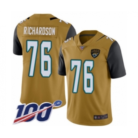 >Men's Jacksonville Jaguars #76 Will Richardson Limited Gold Rush Vapor Untouchable 100th Season Football Jersey