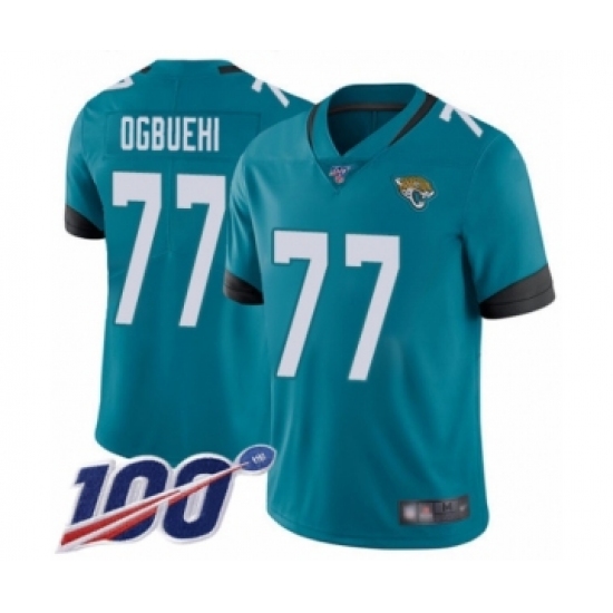 >Men's Jacksonville Jaguars #77 Cedric Ogbuehi Teal Green Alternate Vapor Untouchable Limited Player 100th Season Football Jersey