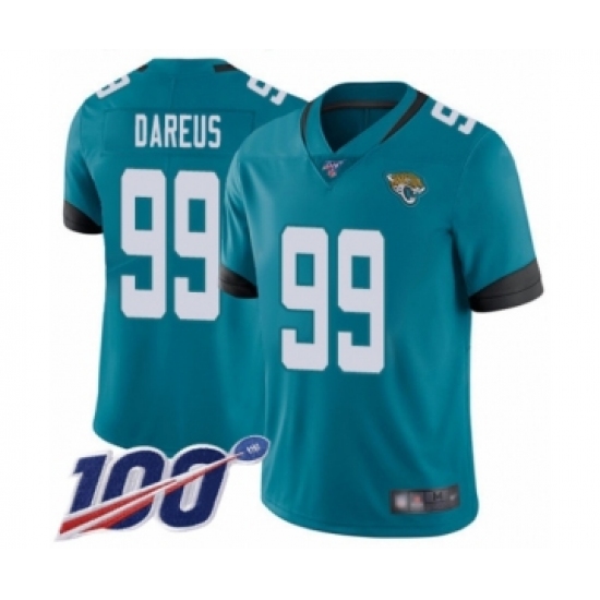 >Men's Jacksonville Jaguars #99 Marcell Dareus Teal Green Alternate Vapor Untouchable Limited Player 100th Season Football Jersey