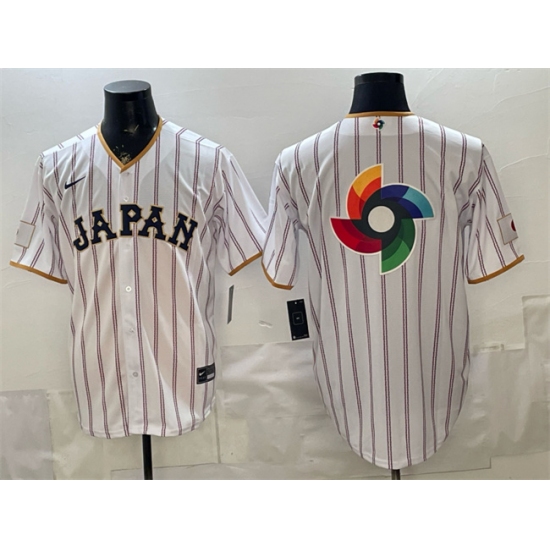 Men's Japan Baseball White 2026 World Baseball Classic Big Logo Home Stadium Stitched Jersey