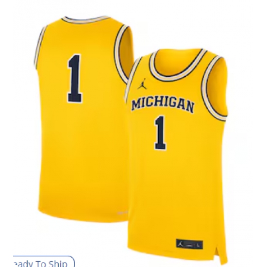 Men's Jordan Brand #1 Maize Michigan Wolverines Alternate Replica Jersey