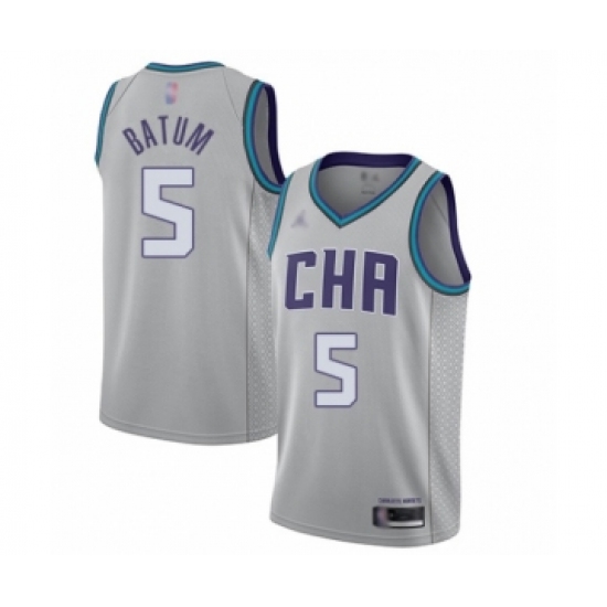 >Men's Jordan Charlotte Hornets #5 Nicolas Batum Swingman Gray Basketball Jersey - 2019 20 City Edition