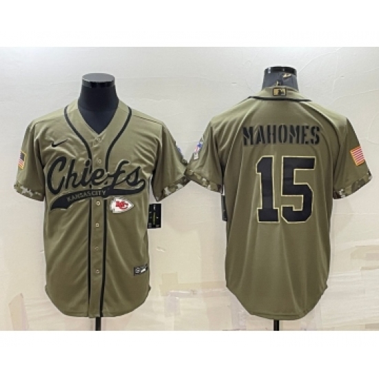 Men's Kansas City Chiefs #15 Patrick Mahomes 2022 Olive Salute to Service Cool Base Stitched Baseball Jersey
