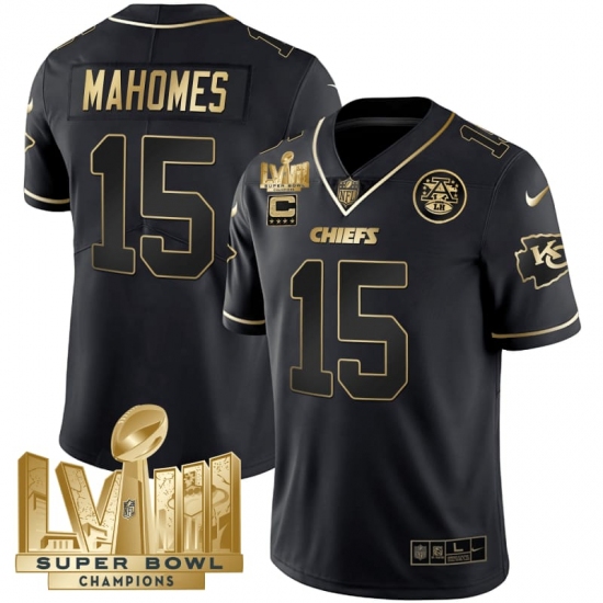Men's Kansas City Chiefs #15 Patrick Mahomes Black Gold C Super Bowl LVII Cool Base Stitched Baseball Jersey