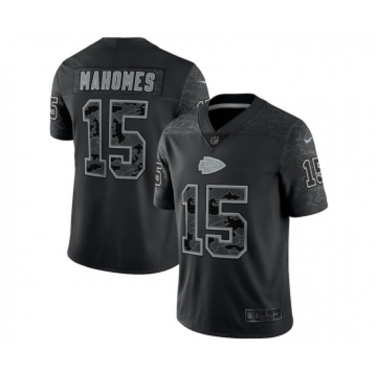 Men's Kansas City Chiefs #15 Patrick Mahomes Black Reflective Limited Stitched Jersey