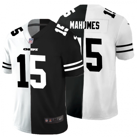 Men's Kansas City Chiefs #15 Patrick Mahomes Black White Limited Split Fashion Football Jersey
