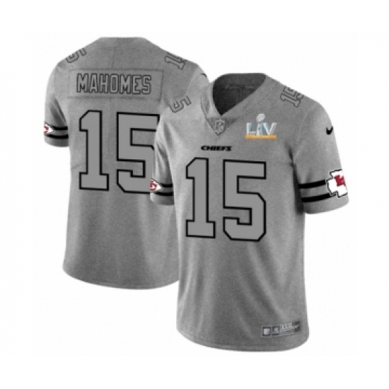 Men's Kansas City Chiefs #15 Patrick Mahomes Gray Gridiron Super Bowl LV Jersey