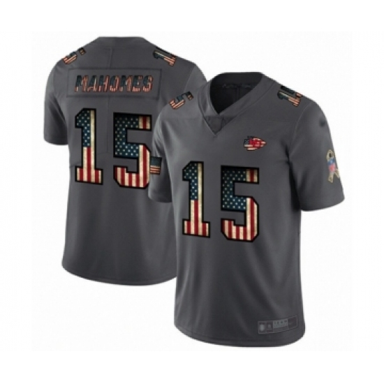 Men's Kansas City Chiefs #15 Patrick Mahomes II Carbon Black Retro Flag Limited Player Football Jersey