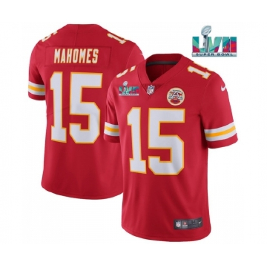 >Men’s Kansas City Chiefs #15 Patrick Mahomes Red Super Bowl LVII Patch Vapor Untouchable Limited Stitched Jersey