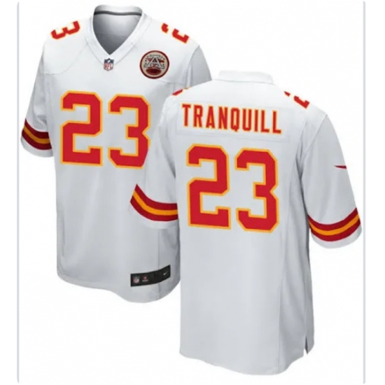 >Men's Kansas City Chiefs #23 Drue Tranquill Nike White Limited Stitched Jersey