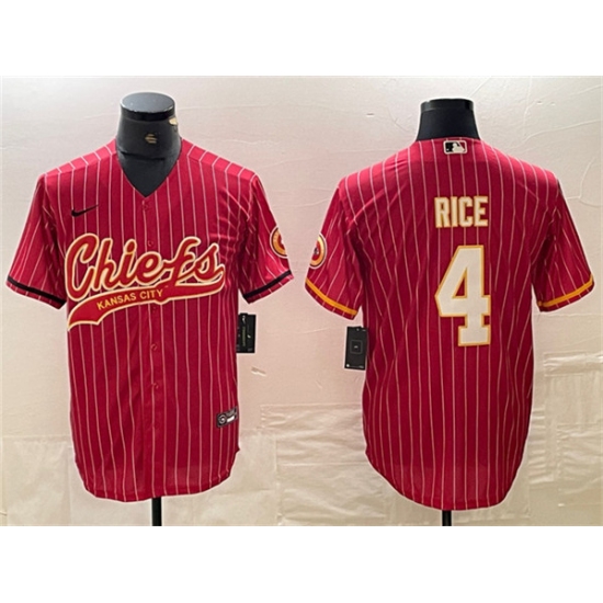 >Men's Kansas City Chiefs #4 Rashee Rice Red Cool Base Stitched Baseball Jersey
