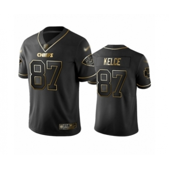 Men's Kansas City Chiefs #87 Travis Kelce Limited Black Golden Edition Football Jersey