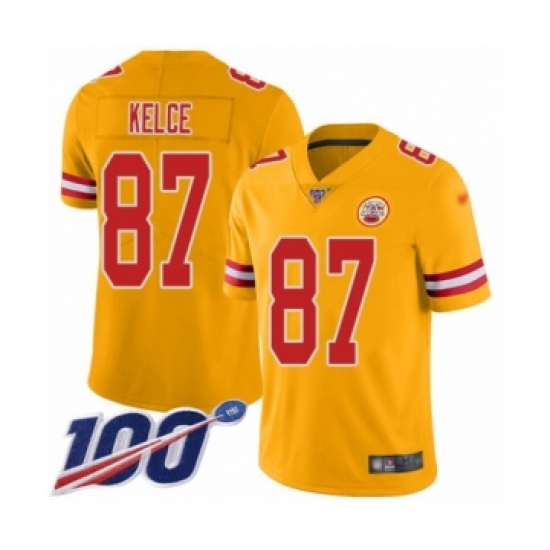 Men's Kansas City Chiefs #87 Travis Kelce Limited Gold Inverted Legend 100th Season Football Jersey