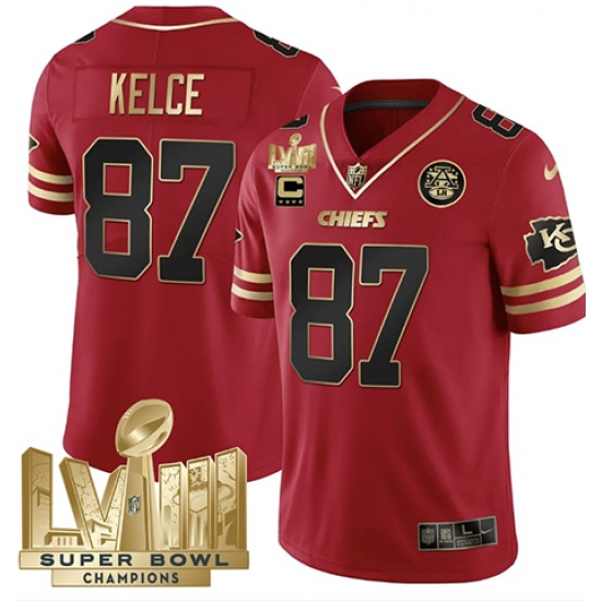 Men's Kansas City Chiefs #87 Travis Kelce Red 2024 F.U.S.E. Super Bowl LVIII Vapor Untouchable Limited Football Stitched Jersey