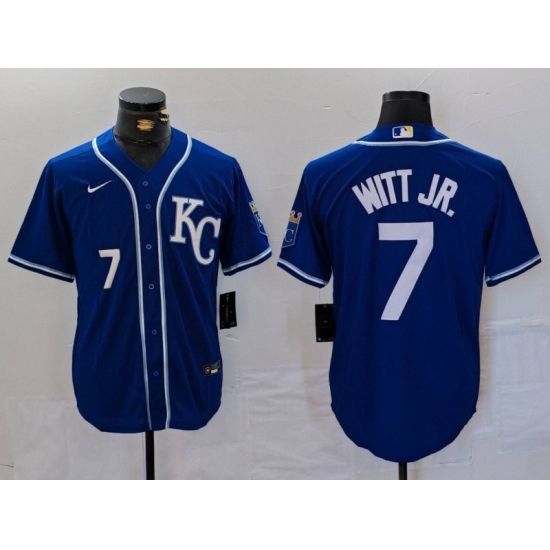 Men's Kansas City Royals #7 Bobby Witt Jr Number Royal Cool Base Stitched Baseball Jersey