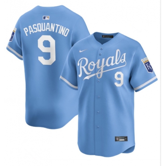 Men's Kansas City Royals #9 Vinnie Pasquantino Light Blue 2024 Alternate Limited Stitched Baseball Jersey