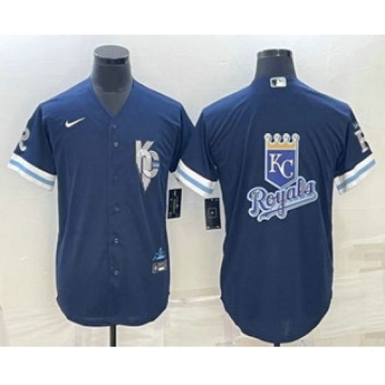 Men's Kansas City Royals Big Logo 2022 Navy Blue City Connect Cool Base Stitched Jersey