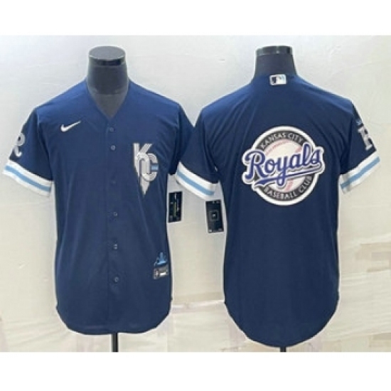 >Men's Kansas City Royals Big Logo 2022 Navy Blue City Connect Cool Base Stitched Jerseys