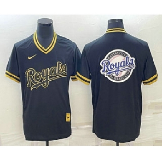 >Men's Kansas City Royals Big Logo Black Gold Nike Cooperstown Legend V Neck Jersey